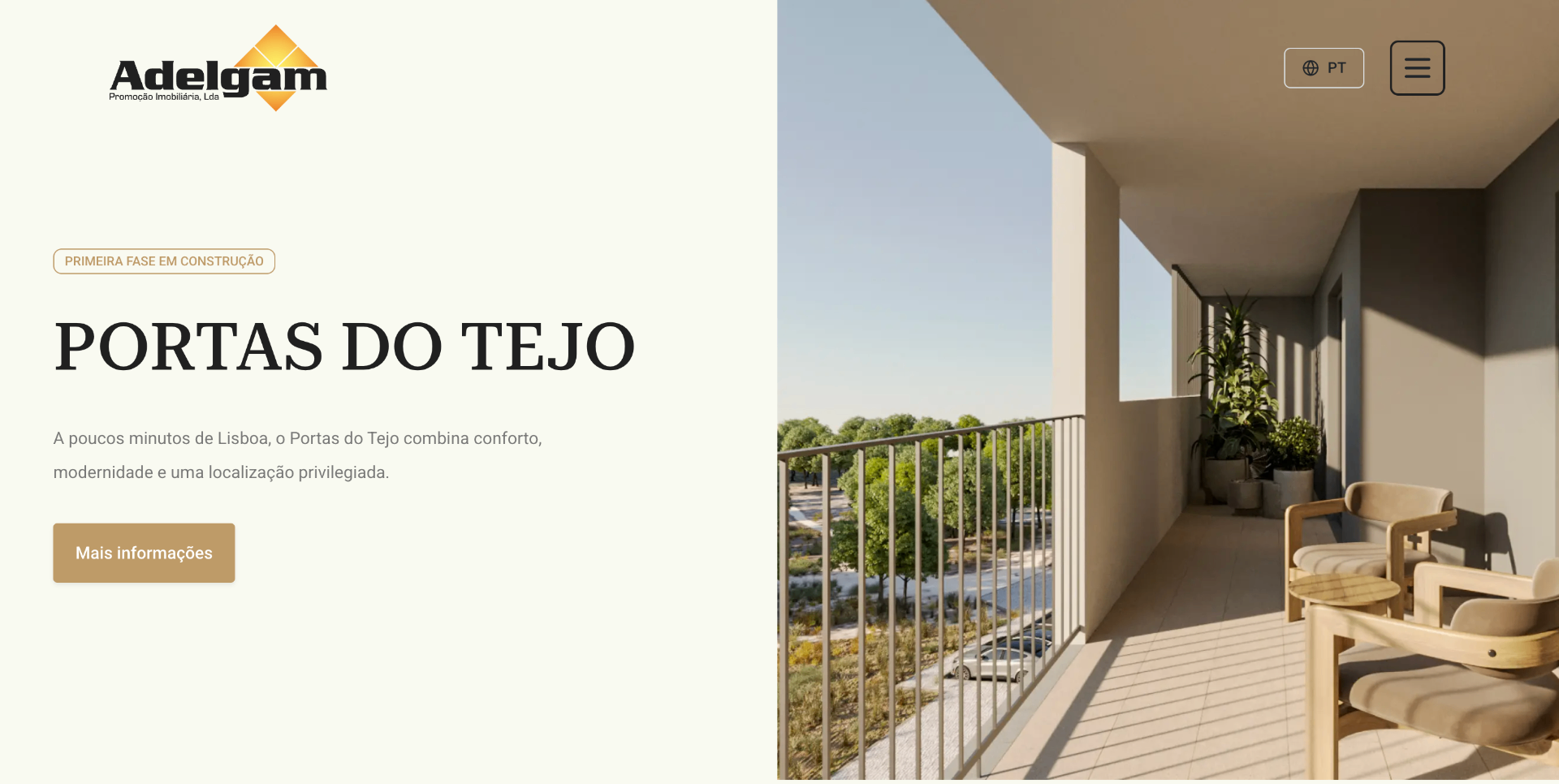 Bilingual (PT/EN) real estate website for a construction and property company in Montijo with 25 years of experience. Includes Google Ads integration, GTM/GA4 setup and SEO.