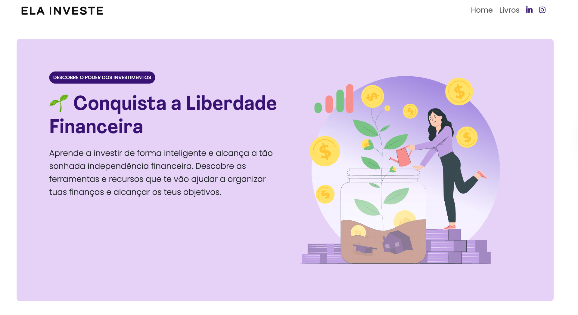 A Portuguese financial empowerment platform for women — with educational content on investing, a FIRE number calculator, expense planners and resources to help achieve financial independence.